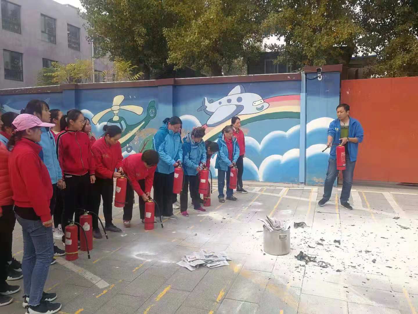 通过演示讲解、动手操作和实地演练,教师们认真地学习了干粉灭火器的使用流程,并在实践中体验灭火的过程。