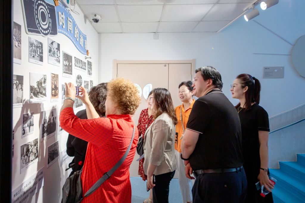 邓怡副校长与园友共同参观园史照片墙