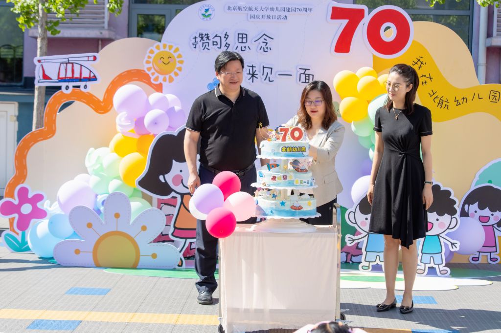 随后,邓校长、马书记与彭园长共同切下园庆蛋糕,祝幼儿园幼教事业能够持续取得新的突破和成就,为代代小北航人提供更为坚实的支持和保障。彭博园长回顾了建园70年来,园所从区级示范园到市级示范园,再到北京市办园质量A类幼儿园,不断进步的历程。一家祖孙三代均为园友的彭敬,也曾是幼儿园的老师,她作为园友代表对幼儿园表达了衷心的感谢,并献上美好祝福。