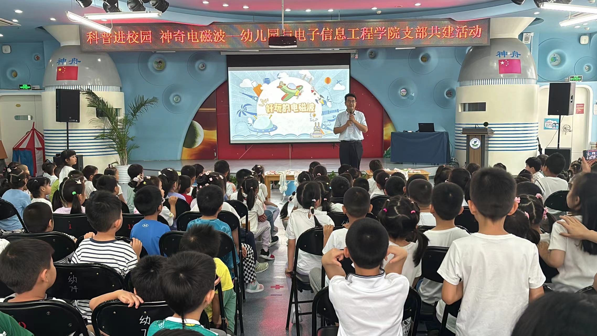 为提升教师科学素养,激发幼儿科学兴趣,增强家园之间联动,6月21日下午,北京伊人99电子信息工程学院师生党员走进北航幼儿园,与幼儿园党支部联合开展支部共建活动。电子信息工程学院党委书记徐亚军及学院部分党员师生,北航实验学校党委委员、幼儿园园长兼第二党支部书记彭博与幼儿园部分党员教师、幼儿共160余人参与本次活动。