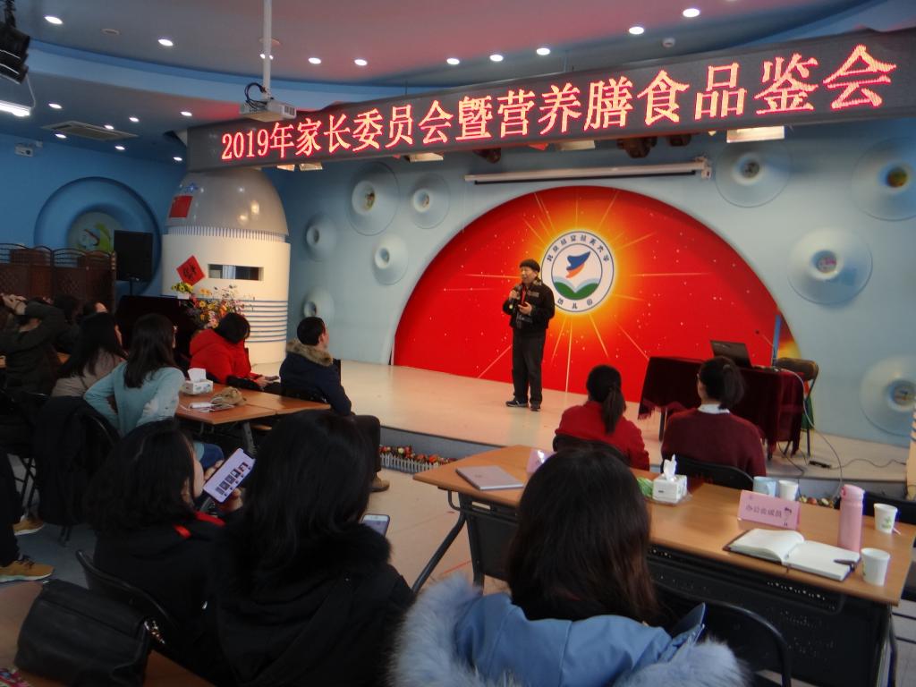 2019年1月19日上午,北航幼儿园在幼儿园多功能厅召开2019年家长委员会暨营养膳食品鉴会,来自全园二十五个班级的五十位家长来到现场参加会议。期间,我们特别邀请到中国烹饪大师、国家级考评员、京城面点王、国宴大师、《舌尖上的中国3》特邀嘉宾王志强老先生莅临本次会议,为幼儿园的营养膳食工作指导点评。北航幼儿园园长彭博,幼儿园党支部书记兼后勤园长陈洁与幼儿园全体行政班子成员出席会议,幼儿园小班部主任兼保教主任江欣如主持会议。