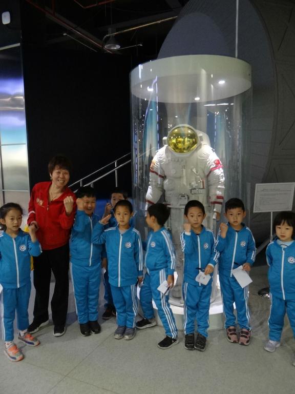 离开博物馆前,在最喜欢的航天服前合影,梦想自己成为航天员的那一天。