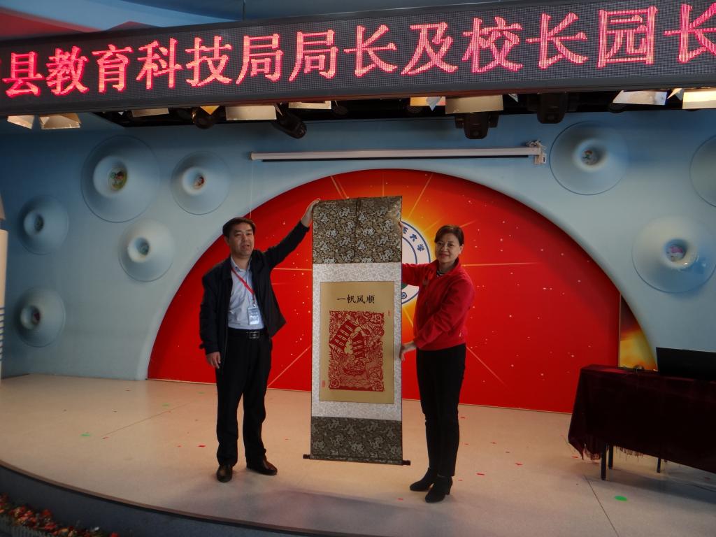 最后,在中央县教育科技局郭局长的带领下,中阳中小幼校、园长一行七十人从参观北航幼儿园。北航幼儿园业务园长刘冬梅向在场所有人详细介绍了北航幼儿园的基本情况。之后郭局长代表中阳县教育科技局将极具有中阳县特征的《一帆风顺》剪纸艺术品赠予我园,并对北航幼儿园对中阳幼教的帮扶表示感谢。希望北航和中阳永远搭建起友谊桥梁,助力中阳基础教育发展。