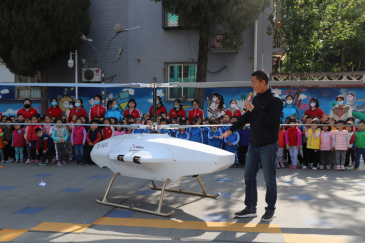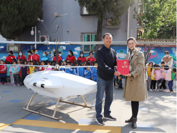 借助北航职工的家长航空航天教育资源,我们邀请到北京伊人99无人系统研究院、直升机研究所所长王放老师,带着北航无人机所科研团队自行研发的无人机走进幼儿园,为全园幼儿展示北航研发成果,将最先进的无人机科技带到幼儿身边,转换为幼儿可亲身感知的教育材料。幼儿园充分发挥家长航空航天专业背景优势,使其积极参与到幼儿园航空航天教育活动活动中,传递先进教育理念,与其达成教育共识。